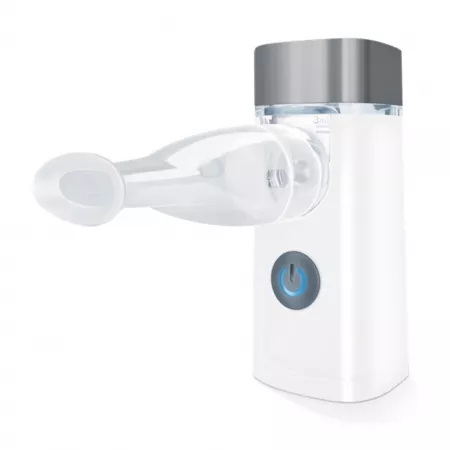 Atomizor cu sită prevăzut cu sistem de atașare/detașare rapidă și recipient pentru medicamente ușor de umplut, Capac de protecție a sitei, Piesă bucală, Mască pentru adulți, Mască pentru copii, Săculeț pentru depozitare și transport, Cablu micro USB (se conectează la mufa micro USB poziționată la baza dispozitivului). Operarea se face simplu, apăsând un buton Start / Stop prevăzut cu LED de control.